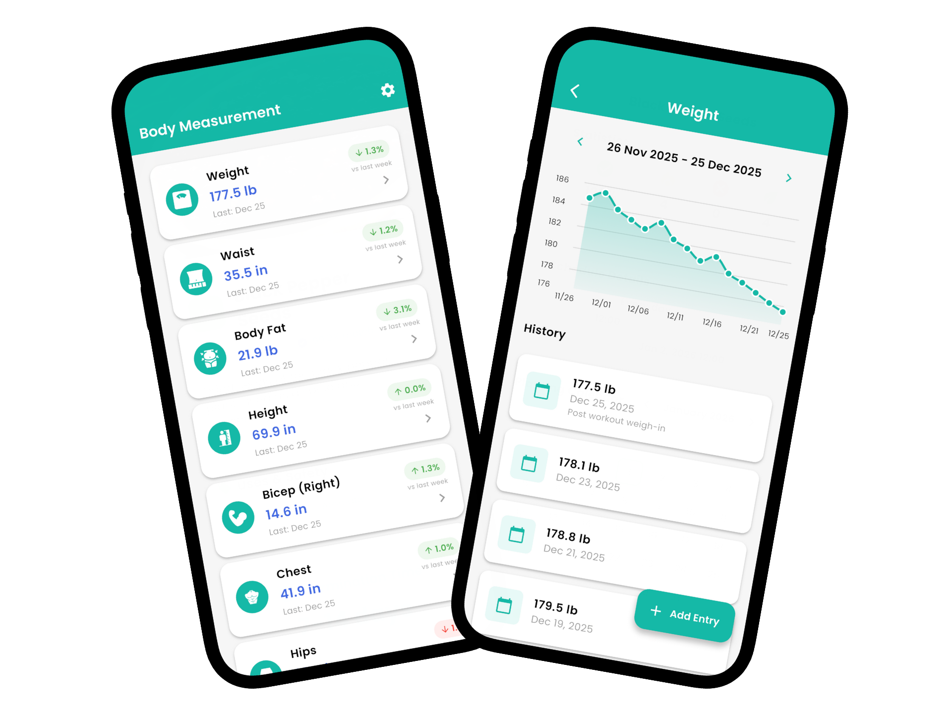 Clean visuals make it easy to spot progress, compare left and right measurements, and discover changes the scale alone would never show.